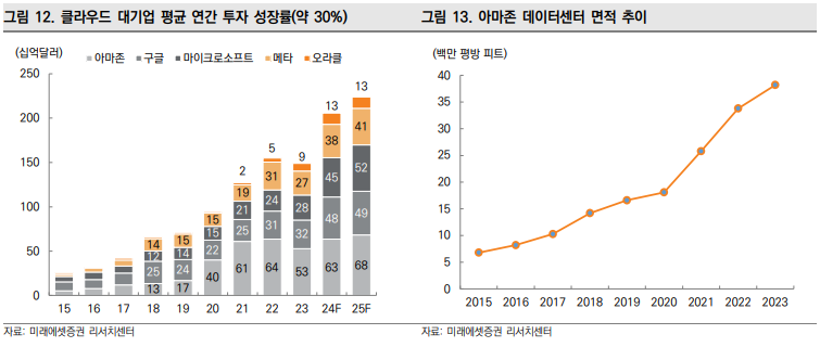 아마존, 구글, 마이크로소프트, 메타, 오라클 등 클라우드 상위 5개사는 계속해서 데이터 센터를 증설 중입니다.