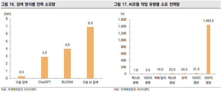 질문이 복잡할 수록 AI가 더 많은 데이터를 검색하고, 추론을 해야 하기 때문에 더 많은 전력이 요구됩니다. 최근에는 이미지, 영상을 생성하는 AI가 등장하면서 작업당 어마어마한 양의 전력이 필요해졌어요.